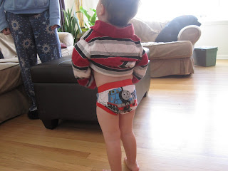 Nick picked out the Thomas the Train ones all by himself. He also got a few pairs of Cars underwear. Now maybe one day he'll figure out how to use them correctly...